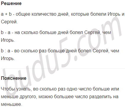 Задание № 9. Игорь болел а дней, а Сергей - b дней. Что означают выражения: