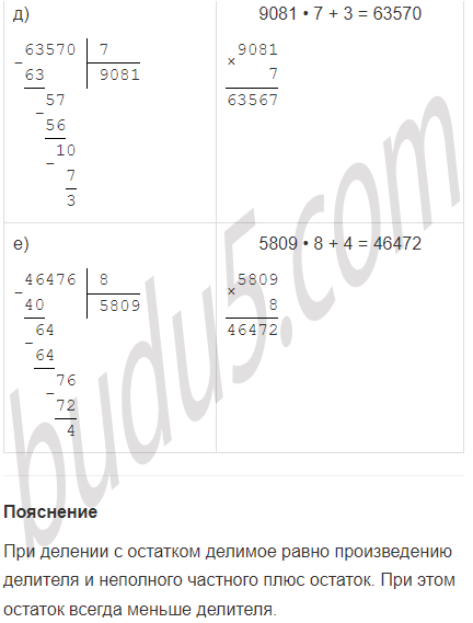 | б) 4764 на 5 | г) 36529 на 6 | е) 46476 на 8 |
